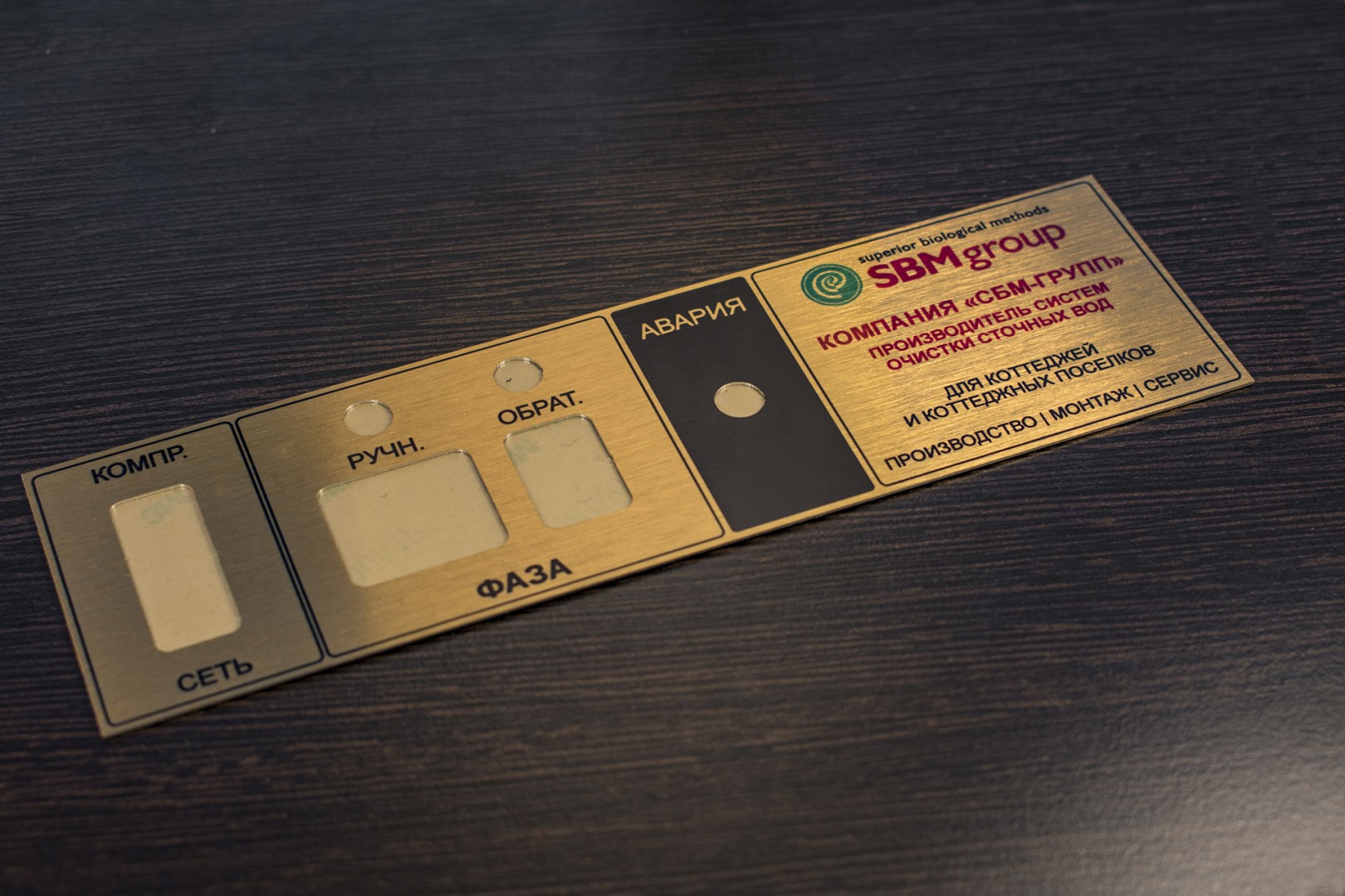 Как правило, для производства шильдов используются алюминиевые пластины толщиной от 0.2 мм до 1.6 мм. Этот материал не подвержен коррозии (не окисляется). К тому же, он очень легкий, что является преимуществом для изделий такого рода. Металл лучше всего позволяет выполнить требования к информационным табличкам. А именно: обеспечивает четкость нанесенных очертаний и долговечность. Рисунок внедряется вглубь металла, поэтому никакие поверхностные царапины не способны разрушить основное изображение. Что положительно сказывается на внешнем виде изделия в целом и на сохранности необходимой информации.